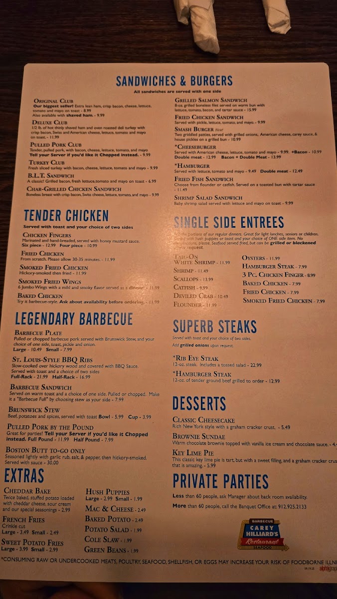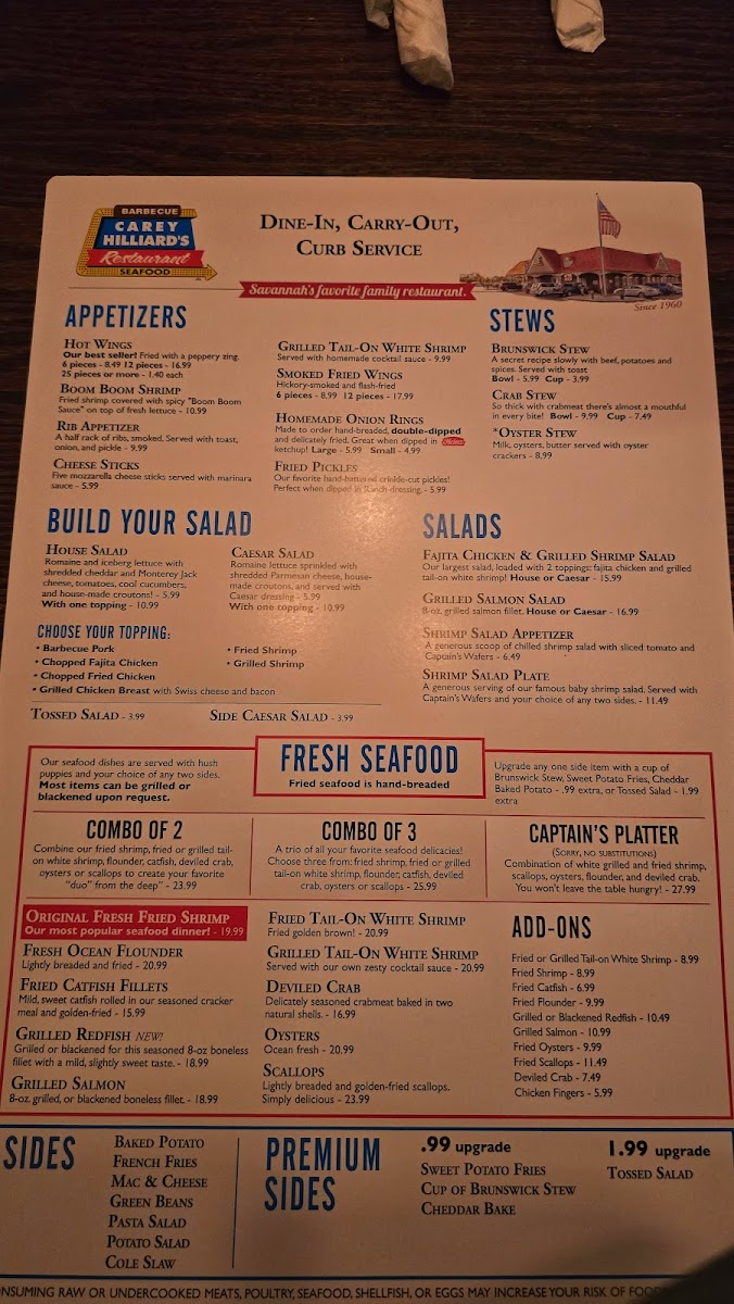 Welcome to Carey Hilliard's Restaurant, a cherished gem nestled in the heart of Savannah, Georgia. An establishment known for its rich culinary traditions and an impressive, diverse menu, Carey Hilliard's is the perfect destination for lovers of authentic American cuisine. When you step inside, you can expect not just food, but an experience defined by warmth and hospitality.